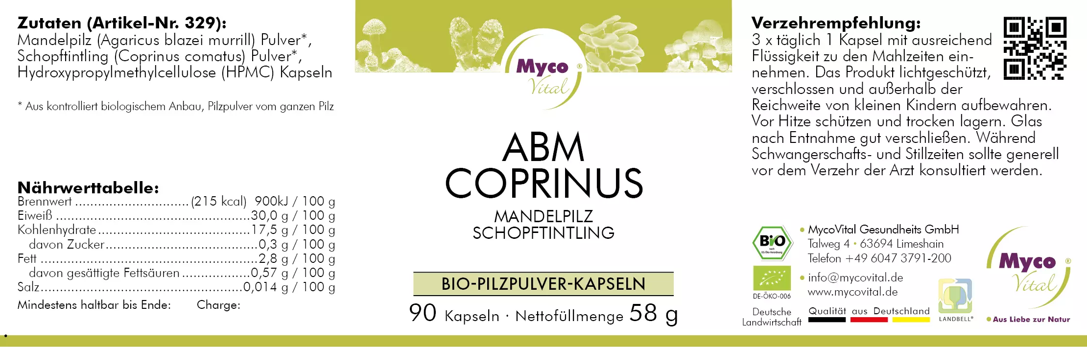 Die Zucht und Verarbeitung der ABM-Coprinus Bio-Vitalpilzpulver-Kapseln erfolgt vollständig in unserem Betrieb in Limeshain, Deutschland. Wir kultivieren die Vitalpilze unter streng kontrollierten, biologischen Bedingungen – ohne den Einsatz von Pestiziden oder chemischen Düngemitteln.