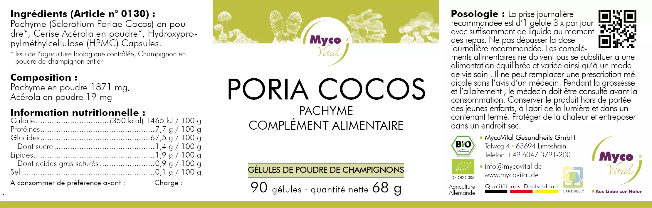 Description du produit : Poria Cocos Bio-Vitalpilzpulver-Kapseln