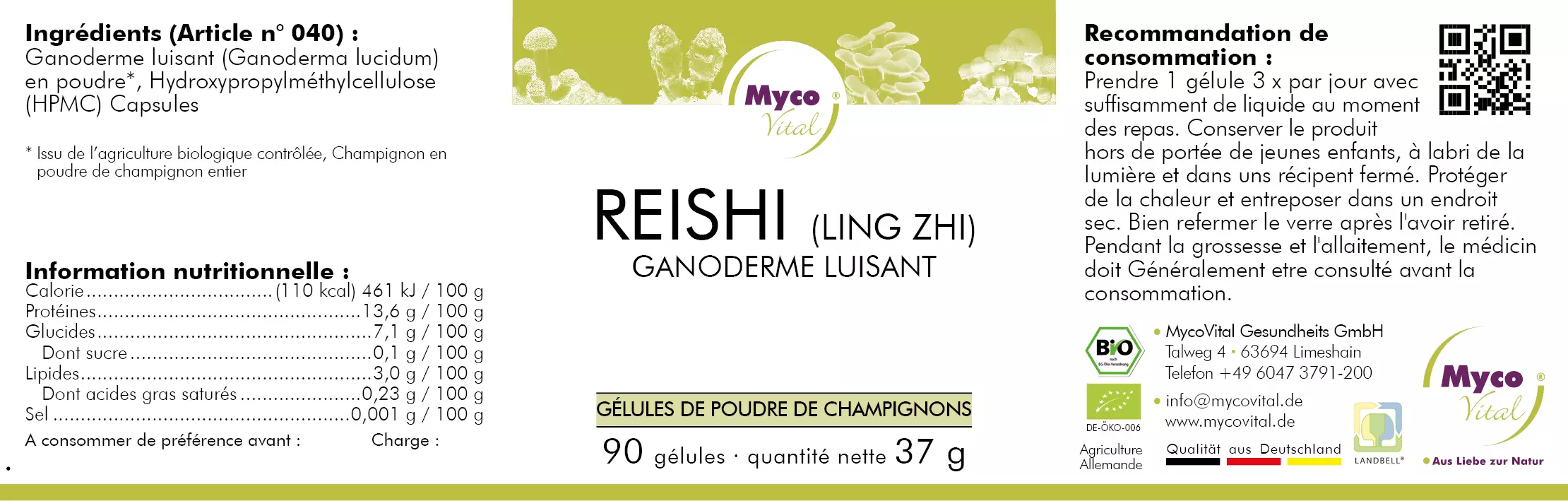 Champignons vitaux biologiques fabriqués en Allemagne