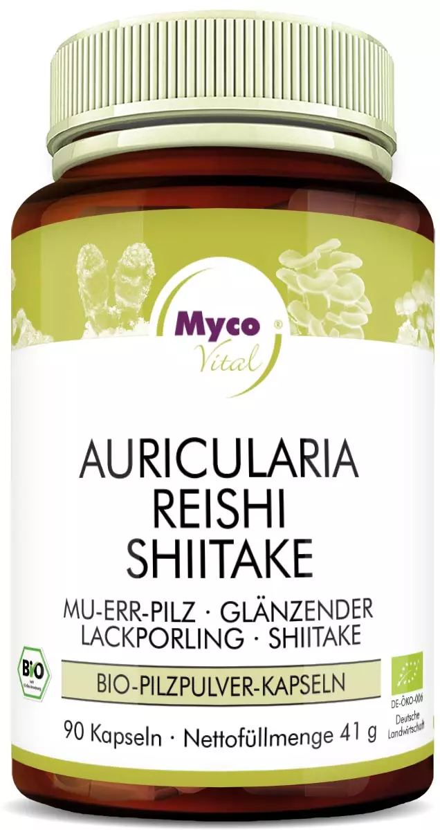 Graphic image of Kultivierung - AURICULARIA-REISHI-SHIITAKE Capsule di polvere di funghi biologici (miscela 354)
