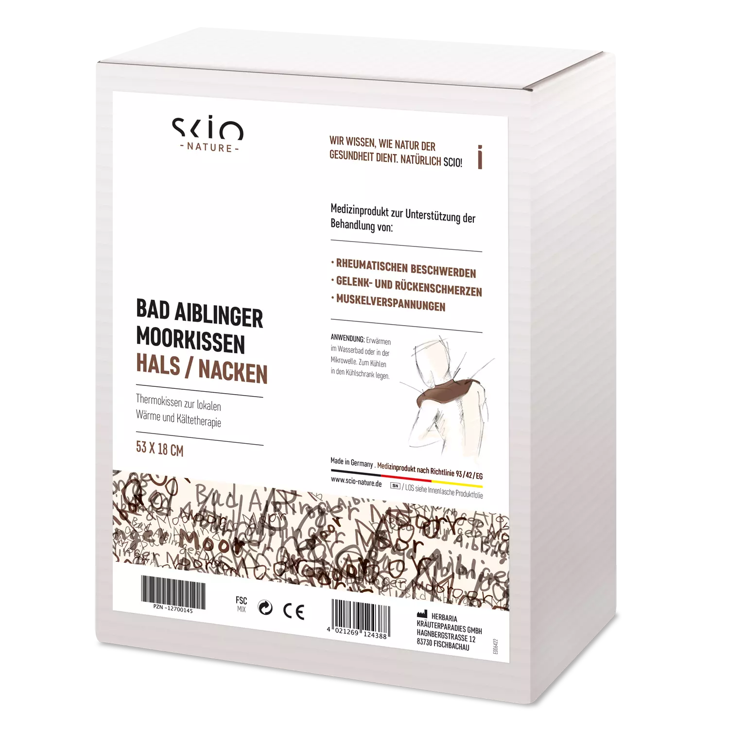Inhalt:1 Stück Scio-Bad Aiblinger Moorkissen Hals/Nacken – 53×18 cm, 1400 g